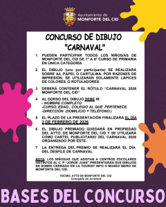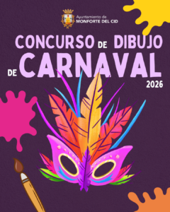 El Ayuntamiento de Monforte del Cid, a través de la Concejalía de Juventud, ha convocado el Concurso de Dibujo “Carnaval 2026”, dirigido a los niños y niñas de 1º a 6º de Educación Primaria del municipio.