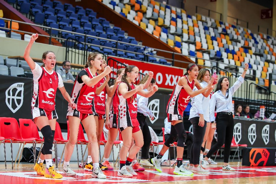 Tras el descanso, más de lo mismo… La selección llevó la iniciativa hasta con diez puntos de ventaja (32-42), pero no conseguía quitarse de encima a un rival que recortó los triples de Silvia Camino y Elena Carretero para llegar al último solo un paso por detrás (46-48). El pulso llegaba a su sprint final casi como empezó, con máxima igualdad… pero también con Madrid defendiendo su ventaja. A 7:40 ya era de siete puntos (46-53) y así se mantenía tres minutos después (49-56). Tres minutos en los que las infantiles remataron el partido con siete puntos consecutivos. ¡A la final!