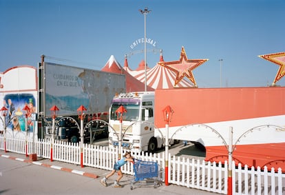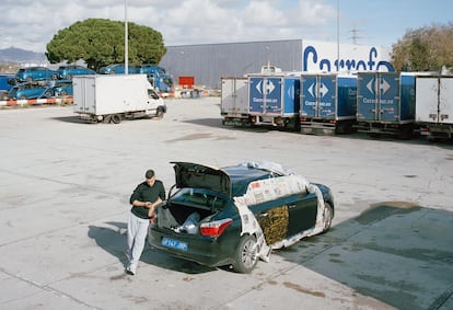- “Hay una zona en el parking donde se concentran muchos camiones. Muchos camioneros, a menudo extranjeros, pasan allí los domingos. Hacen vida dentro de la cabina y se relacionan entre ellos. Por lo general, no suelo hablar con la gente, pero con ellos sí intercambio algunas palabras. En realidad, el individuo más extraño de todos soy yo. Soy quien ha pasado más tiempo en el parking del Carrefour. Me ven encima de mi coche, con un trípode, la cámara y el chaleco fluorescente, y no dicen nada. Me ven como parte del conjunto. El color amarillo me identifica como un trabajador”.