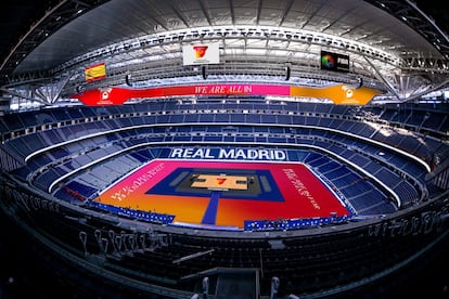 Recreación del Bernabéu transformado en cancha de baloncesto.