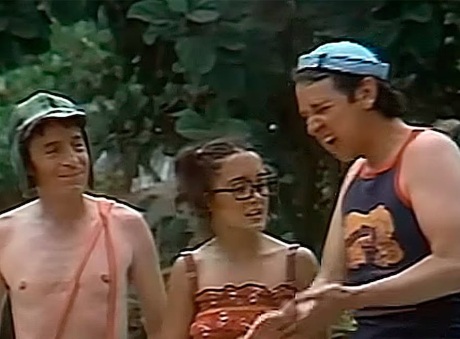 Chespirito, María Antonieta de Las Nieves y Carlos Villagrán en el especial de tres capítulos del ‘El Chavo del Ocho’ en Acapulco, que se habría grabado entre 1977 o 1978. Fue el último para Villagran, tras quebrar su relación con Chespirito. Foto: Captura de pantalla