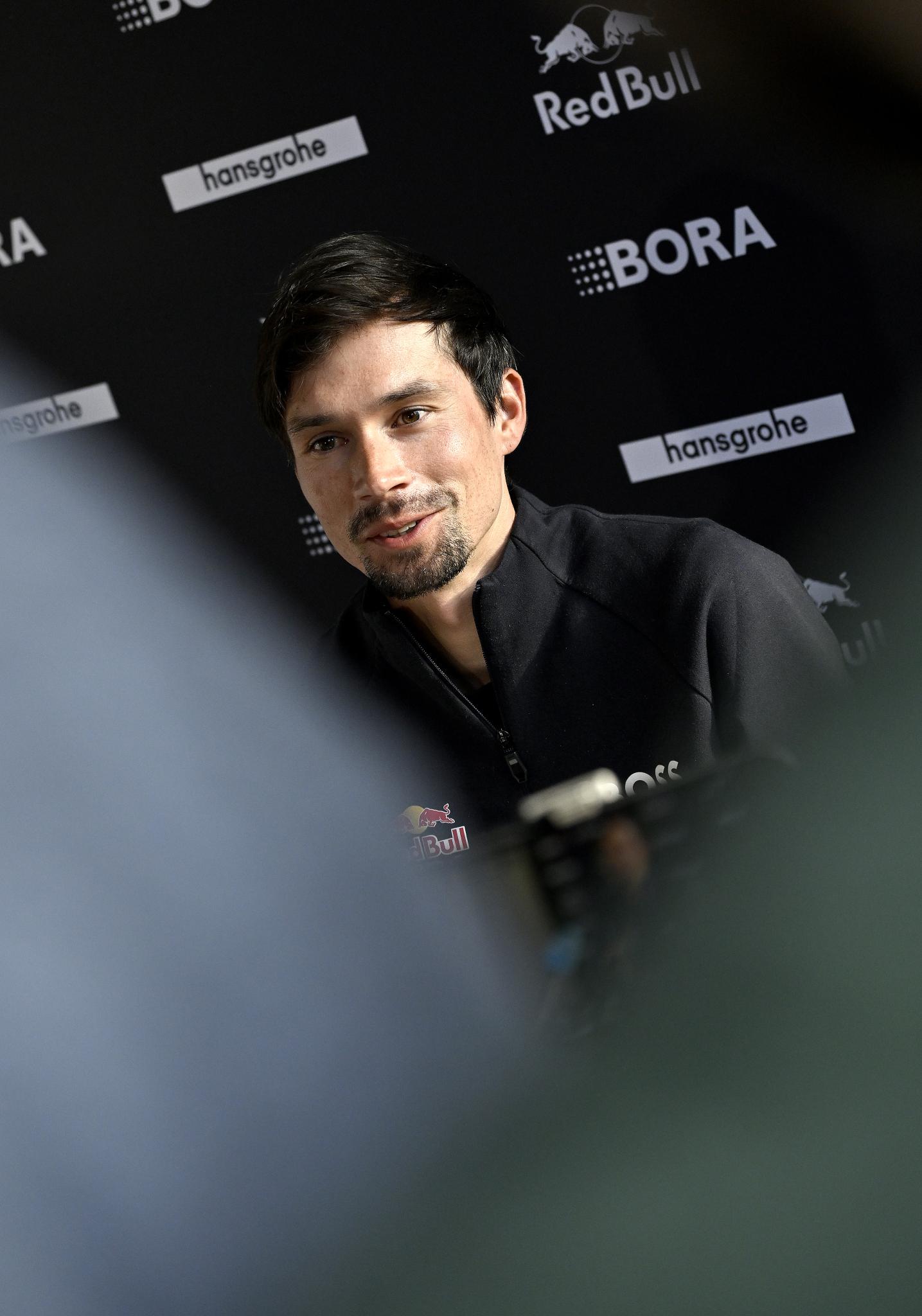 Primoz Roglic, atendiendo a la prensa internacional. Foto: Joan Lladó
