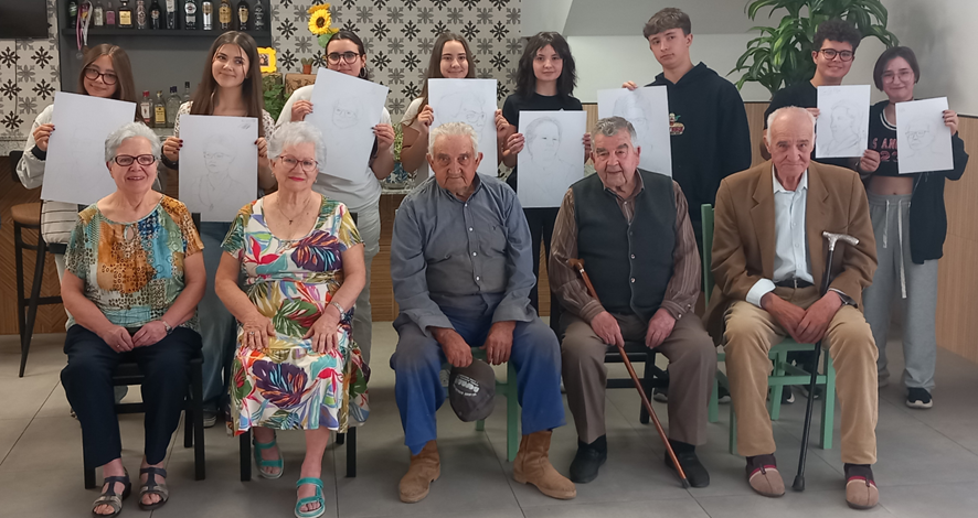 Estudiantes y modelos posan juntos: un retrato que une generaciones y celebra la mirada artística del alumnado.