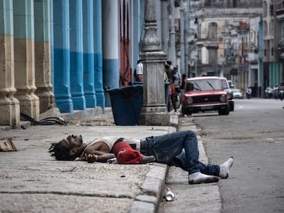 Un poco más adelante de la casa de Marina, en los soportales de la avenida Galiano, donde ya apenas quedan los salones de salsa y jazz que la hicieron famosa, hay un chico descalzo y sentado con la cabeza metida entre las rodillas, lo que apenas disimula los temblores. “Eso cuando te arrebata, te encartona la pinga, se te va la luz. Es lo más horrible que te puede pasar”, dice un señor de unos sesenta años, con un cencerro y unas baquetas bajo el brazo, que se ha parado a comprobar si el muchacho estaba bien. Lo que le sucede son los efectos de El Químico, una mezcla de drogas sintéticas muy barata y adictiva, que lleva un tiempo corriendo por las calles. El señor de las baquetas, un viejo jazzman que se gana la vida tocando por aquí, hace una analogía con la epidemia del crack en Nueva York de finales de los ochenta. “En el fondo, da igual que lleguen los americanos a Cuba, porque ya están aquí todos los males del capitalismo”.