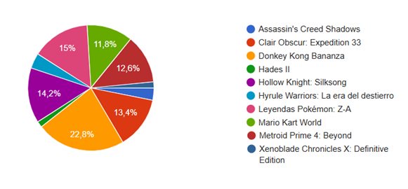 Como sabéis, en esta categoría, la más importante, había un total de 10 candidatos a convertirse en el mejor juego del año para el público nintendero. Tras un recuento de los más de 3.400 votos, hemos podido conocer que Donkey Kong Bananza ha conseguido colocarse como el mejor ttulo del año tras traer de vuelta por todo lo alto a una gran querida franquicia.