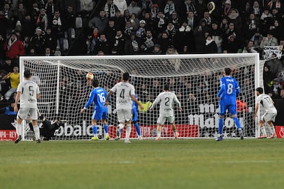 Lo que no conseguía el juego lo logró la adrenalina, que con el Madrid muchas veces se dispara cuando se ve en dificultades grandes. Tampoco es que llegara al Carlos Belmonte muy aliviado, pero le despertó brevemente el 1-0. Javi Villar, criado en La Fábrica, cabeceó un córner a la red saltando por encima de Mastantuono y se agitó algo en el Real. El chispazo de respuesta fue casi inmediato, una descarga de orgullo un poco desesperado. Huijsen cabeceó un córner sacado por Güler, que Lizoain, el portero, repelió con muchos reflejos. Pero Mastantuono alargó la pierna, cazó el rechace y empató. Vuelta a empezar tras dos espasmos. Vuelta a un Madrid que movía el balón con pesadez. Güler seguía empeñado en espabilar el juego, pero no encontraba más compañía que la de Cestero, que se manejaba con una personalidad notable.