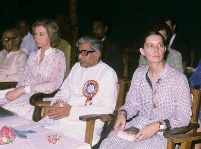 La reina emérita Sofía, acompañada por su hermana, la princesa Irene de Grecia, durante su viaje oficial a la India, el 28 de enero de 1982.Gianni Ferrari (Getty Images)