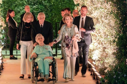 La reina emérita Sofía y la reina Letizia almuerzan en el Hotel Formentor junto a la princesa Irene de Grecia, hermana de la reina, y Tatiana Fourcheau.Lalo Yasky (WireImage)