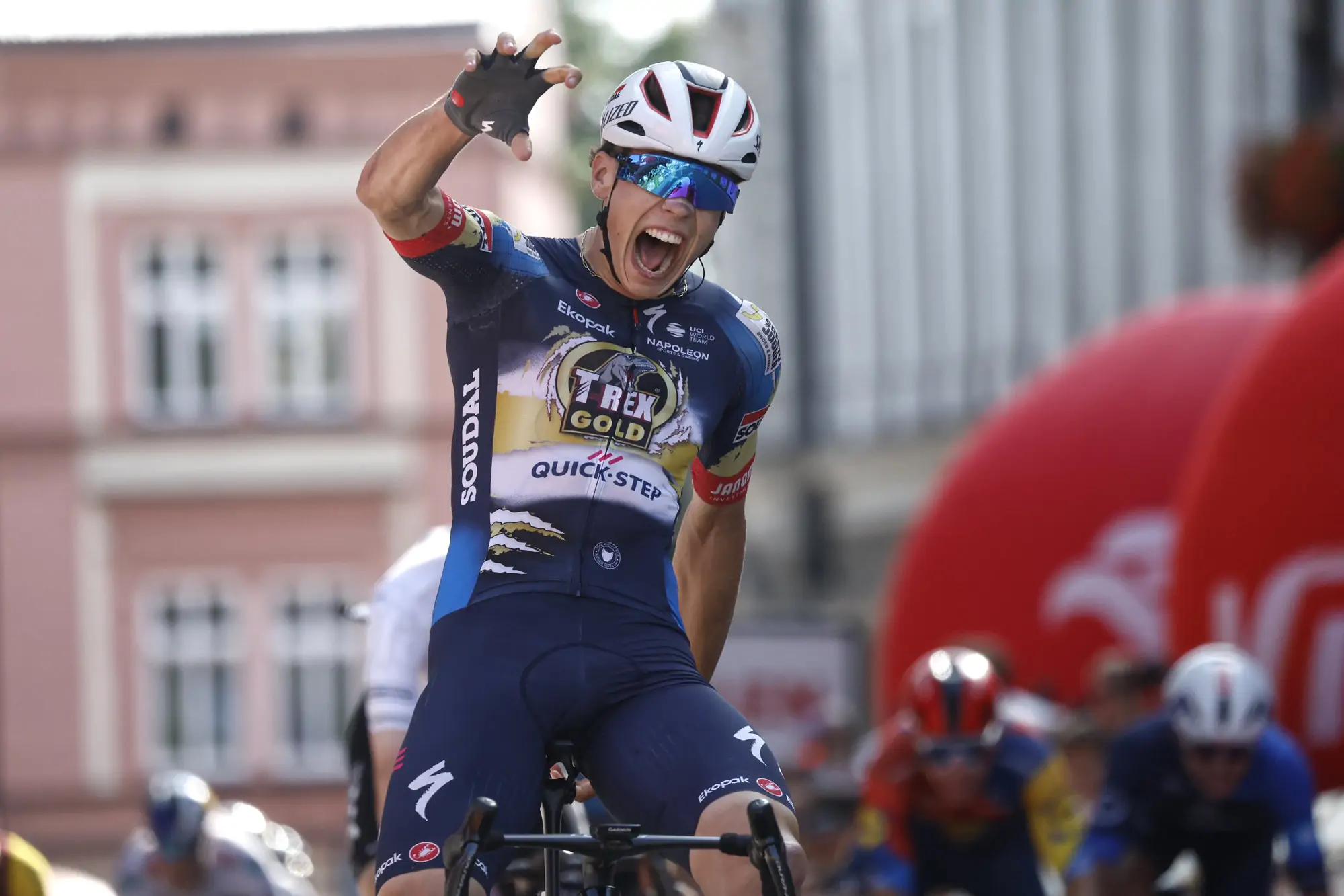 Paul Magnier (Soudal): «Tuvimos que sobrevivir a las subidas y afrontar la vuelta técnica al final, con adoquines y muchas curvas. Lo hicimos perfectamente como equipo y estoy contento de haber tenido buenas piernas para rematar. Estoy muy feliz de conseguir aquí mi primera victoria en el WorldTour, sobre todo llevando el maillot especial T-Rex Gold Quick-Step».
