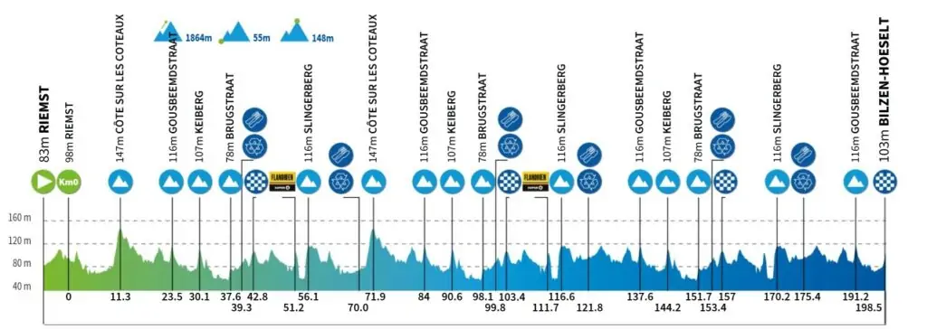 Esta etapa en Limburgo discurre por un mosaico de colinas y viñedos. Con Riemst como punto de partida y Bilzen-Hoeselt como meta, se repite la etapa inaugural del año pasado. Las carreteras onduladas y las colinas cortas invitan a los ataques, pero ¿podrán también marcar la diferencia? El año pasado, Jonathan Milan se alzó con la victoria y el primer maillot de líder en un sprint masivo.