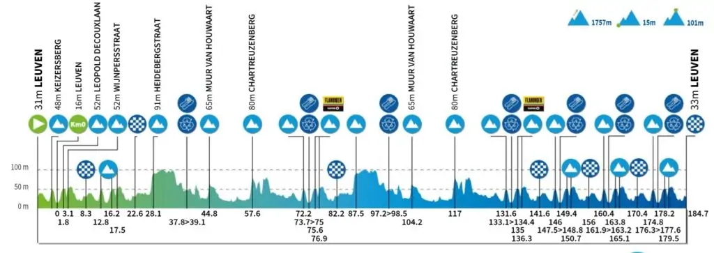 La etapa final de este Renewi Tour tiene lugar en la ciudad de Lovaina, apasionada por el ciclismo y sede del Mundial de fondo en carretera 2021. Un circuito urbano local con pequeñas subidas como Keizersberg y Wijnpers, intercaladas con un recorrido más largo hacia Hageland, garantiza el espectáculo hasta los últimos metros. En Lovaina, en la hermosa Bondgenotenlaan, lucharán por la victoria de etapa y la clasificación final.