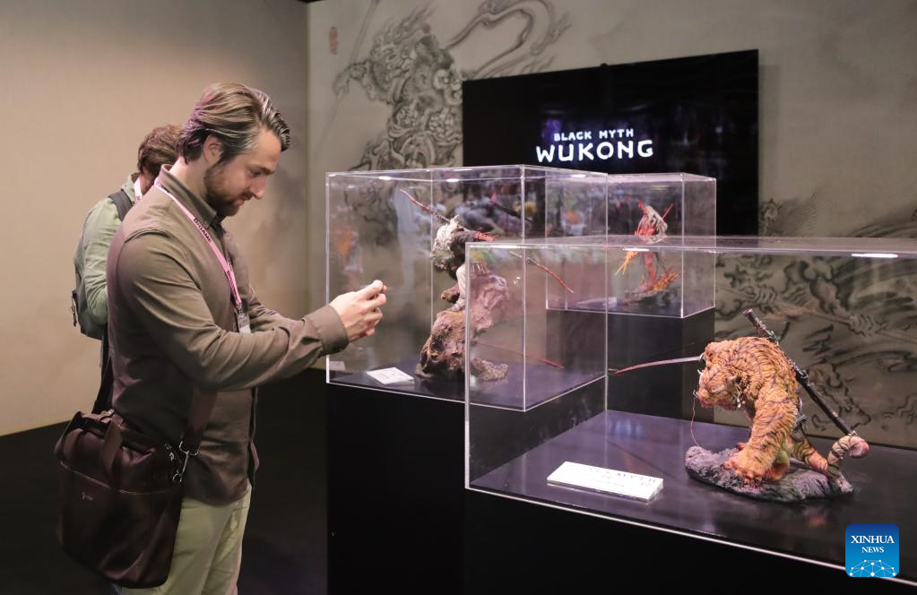 COLONIA, 22 agosto, 2025 (Xinhua) — Imagen del 20 de agosto de 2025 de visitantes tomando fotografías de maquetas del juego «Black Myth: Wukong» durante la Gamescom 2025, en Colonia, Alemania. La Gamescom 2025, una de las ferias comerciales de videojuegos y juegos de computadora más grandes del mundo, comenzó aquí el miércoles con un récord de 1.500 expositores, destacando tanto el alcance global de la industria como la creciente presencia de los desarrolladores chinos. (Xinhua/Zhang Fan)