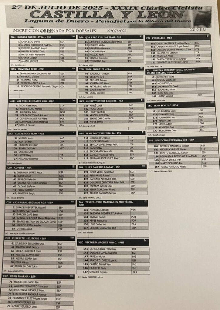 En la nómina de conjuntos ProTeam, habrá un total de 8 estructuras con amplísima representación española. Están invitados el Caja Rural Seguros RGA, el burgalés Javier Ibáñez; el Burgos Burpellet BH con el joven ciclista de Laguna de Duero, Dani Cavia, y el burgalés Mario Aparicio; el Euskaltel Euskadi, y el Kern Pharma, con el vallisoletano Nil Gimeno. Junto a ellos, participa el italiano Polti VisitMalta, el equipo de la Fundación Alberto Contador; los franceses de TotalEnergies y TDT Unibet así como el equipo suizo Q 36.5.