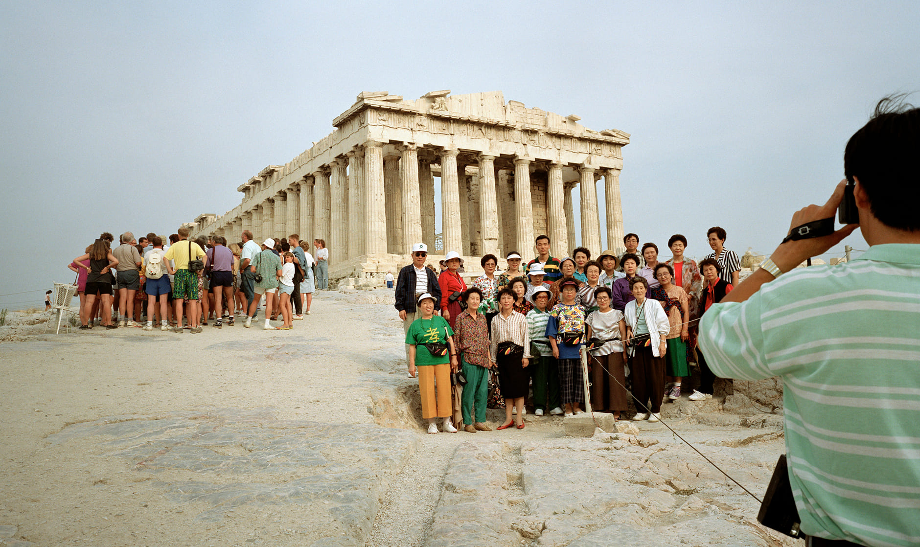 Ese tipo de imágenes, a medio camino entre el esperpento y la locura por fotografiarlo absolutamente todo, son las que ha reflejado Martin Parr en su trabajo, y que tan bien ilustran el turismo de nuestro milenio. “La fotografía es el souvenir del turista actual”, sentenció hace tiempo. Y no se equivocaba. El británico ha pasado 30 años en París enfocando su cámara no hacia los monumentos y rincones que esconde la ciudad del amor, sino hacia las riadas de turistas que día a día abarrotan la torre Eiffel, los Campos Elíseos o el Louvre. Parr tira de humor ácido para denunciar la masificación que todo viajero ha sufrido en destinos tan conocidos como Machu Pichu, Roma o Atenas.