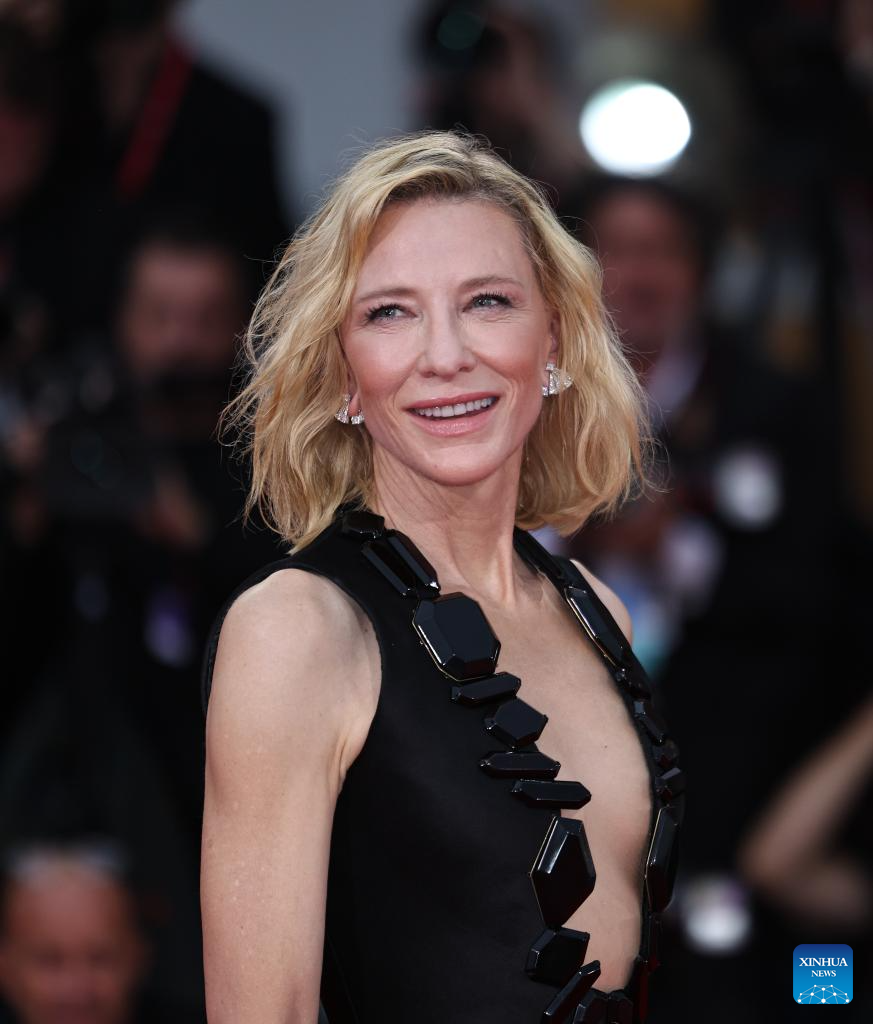 VENECIA, 28 agosto, 2025 (Xinhua) — Imagen del 27 de agosto de 2025 de la actriz Cate Blanchett llegando a la alfombra roja de la ceremonia inaugural del 82° Festival de Cine de Venecia, en Venecia, Italia. El 82° Festival de Cine de Venecia comenzó el miércoles en la isla de Lido, en Venecia, Italia, con 21 cintas que competirán por el premio León de Oro. (Xinhua/Li Jing)