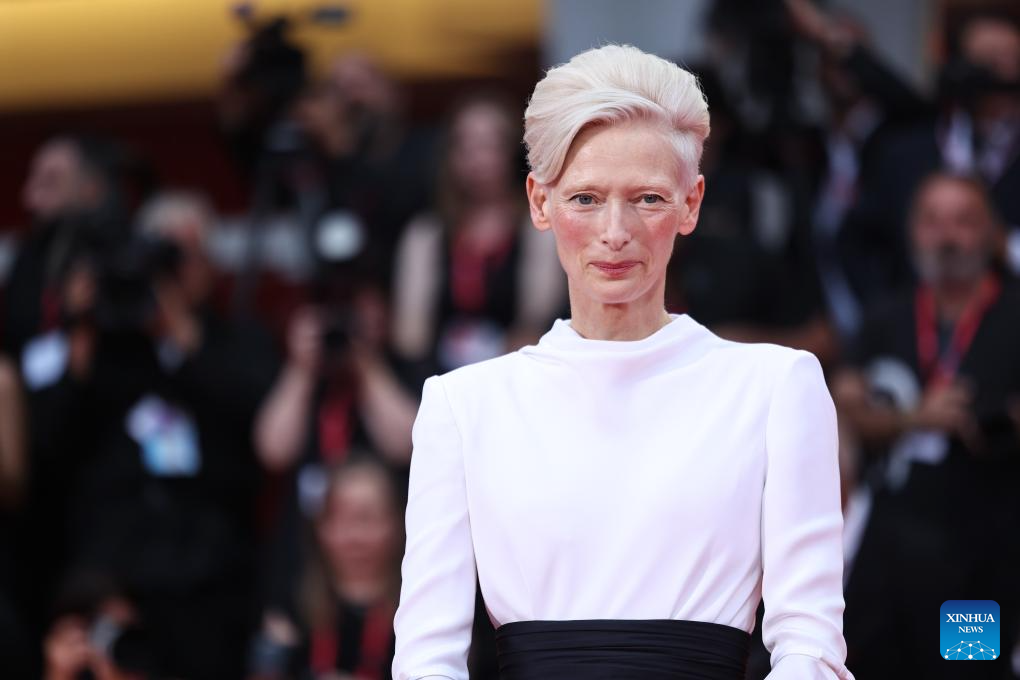 VENECIA, 28 agosto, 2025 (Xinhua) — Imagen del 27 de agosto de 2025 de la actriz Tilda Swinton llegando a la alfombra roja de la ceremonia inaugural del 82° Festival de Cine de Venecia, en Venecia, Italia. El 82° Festival de Cine de Venecia comenzó el miércoles en la isla de Lido, en Venecia, Italia, con 21 cintas que competirán por el premio León de Oro. (Xinhua/Li Jing)