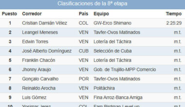CCiclismo Read More Clasificaciones completas de la 8ª etapa de la Vuelta a Venezuela 202514/09/2025 EsCiclismo.com · Competición Carretera · 14/09/2025 Éstas son las clasificaciones completas tras la…