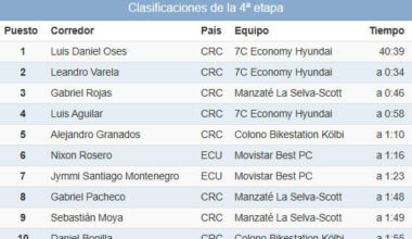 CCiclismo Read More Clasificaciones completas de la 4ª etapa de la Vuelta a Costa Rica 202515/12/2025 EsCiclismo.com · Competición Carretera · 15/12/2025 Éstas son las clasificaciones completas tras la…