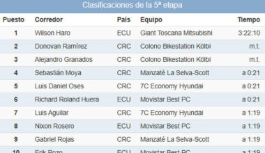CCiclismo Read More Clasificaciones completas de la 5ª etapa de la Vuelta a Costa Rica 202516/12/2025 EsCiclismo.com · Competición Carretera · 16/12/2025 Éstas son las clasificaciones completas tras la…