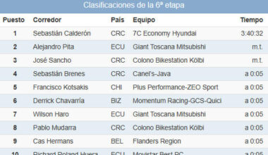 CCiclismo Read More Clasificaciones completas tras la 6ª etapa de la Vuelta a Costa Rica 202518/12/2025 EsCiclismo.com · Competición Carretera · 17/12/2025 Éstas son las clasificaciones completas tras la…