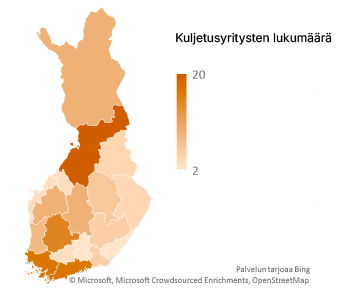 Yhdyskuntajätteen kuljetusyritysten lukumäärä maakunnittain yrityksen kotikunnan perusteella