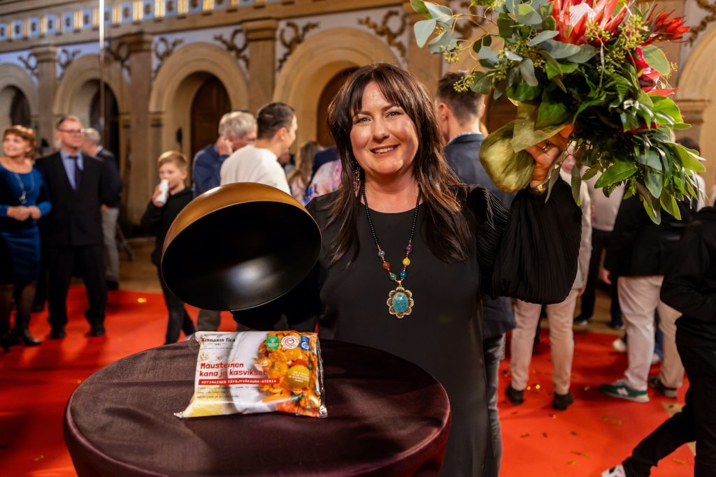 Hollolalaisen sukutilan yrittäjä Terhi Kinnari voitti Suomalainen menestysresepti-kilpailun kolmella täysjyväkaurapohjaisella valmisruoka-aterialla. Kuva: Sari Soininen/MTV
