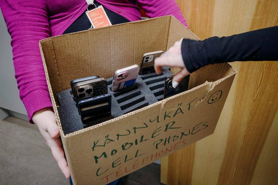 Monissa kouluissa puhelimet kerätään oppituntien ajaksi laatikoihin eli puhelinparkkeihin. Päivi Tuovinen