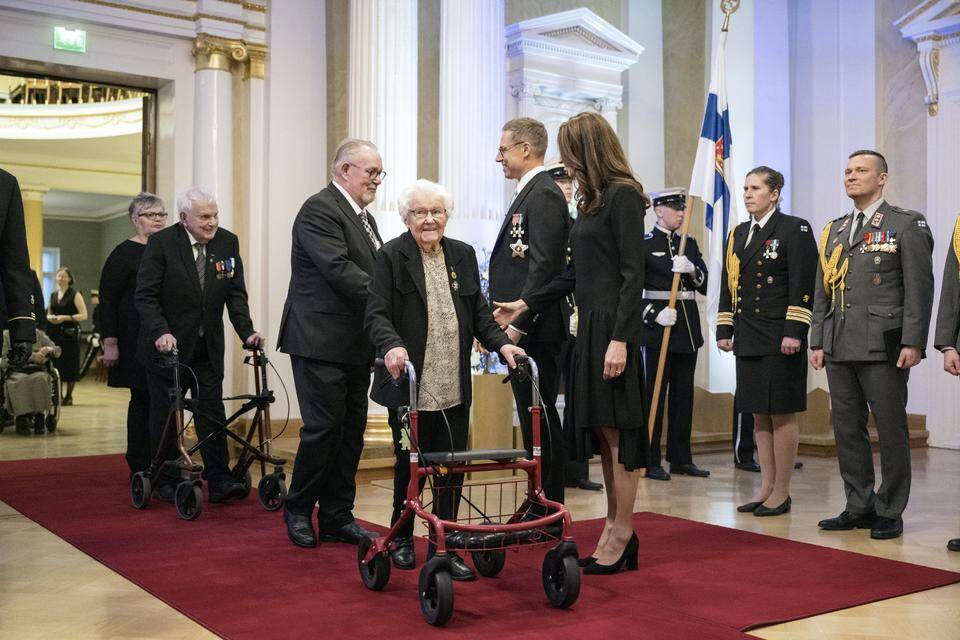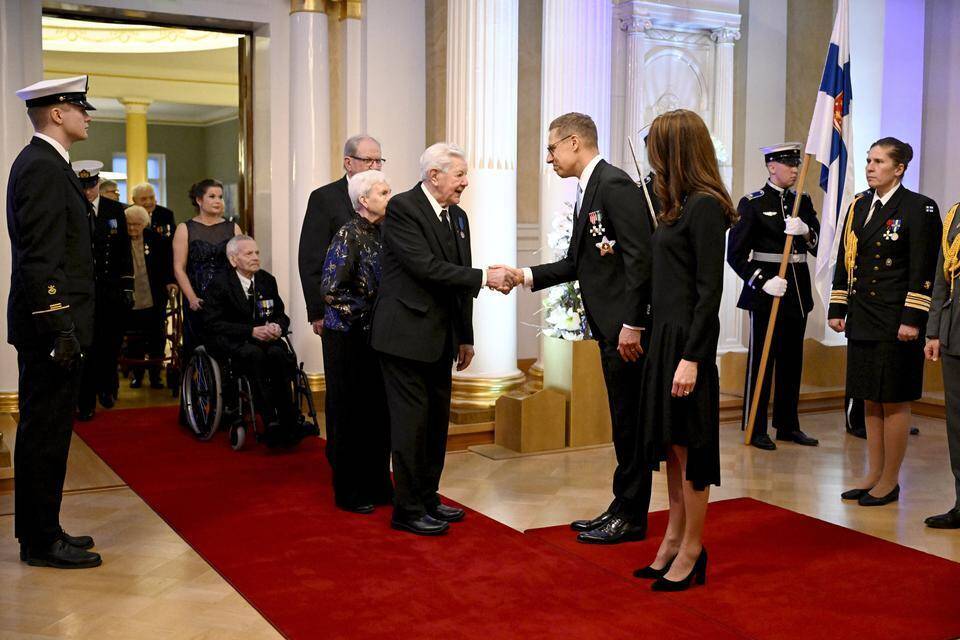 Tasavallan presidentti Alexander Stubb ja hänen puolisonsa Suzanne Innes-Stubb ottivat tiistaina vastaan sotiemme veteraaneja, lottia ja muita sotasukupolven edustajia Presidentinlinnassa.