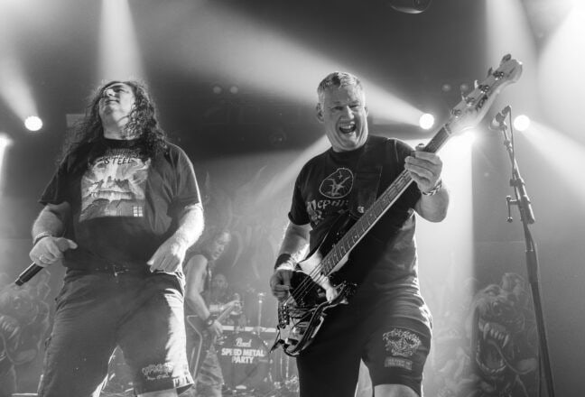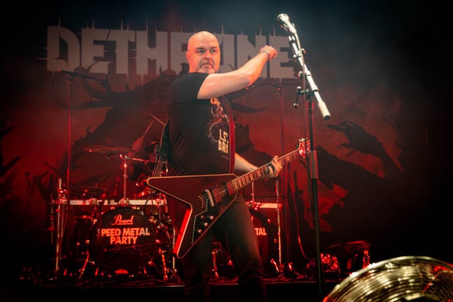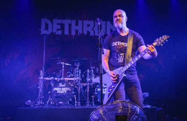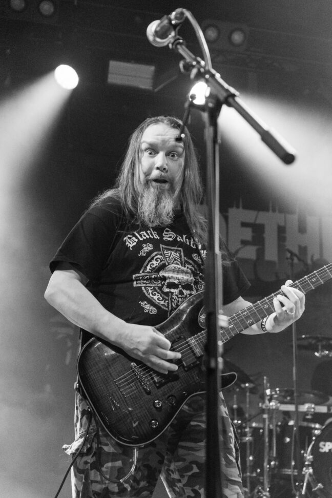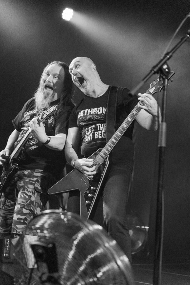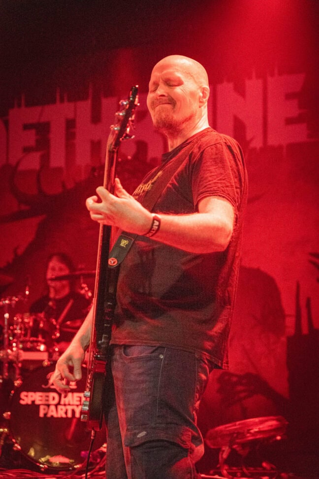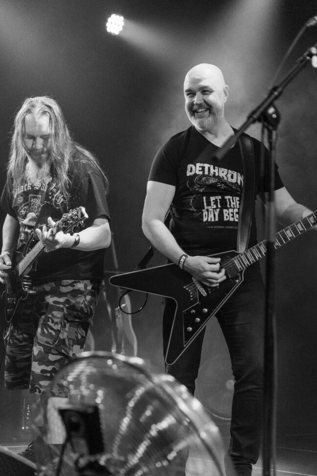 Mutta Let the day begin ja Dethrone lavalle. Predator-biisi kajahtaa ilmoille suunnilleen yhtä hienon tunkkaisilla soundeilla kuin levyltä aikoinaan. Yleisössä on melko väljää, mutta bändillä vaikuttaa olevan hyvä fiilis. Dethrone ei hirmuisesti keikkoja Speed Metal Partyjen ulkopuolella ikävä kyllä soittele. Tämä näkyy ja kuuluu soiton tietynlaisessa epätasaisuudessa. Myös tekniset ongelmat vaivasivat hieman keikan aikana, mutta silti oli hienoa kuunnella biisejä, joita pyöritteli viimeksi teininä vinyyliltä. Uusi biisi Raise the Dead istui settiin loistavasti ja opin myös sen, että Multisilta (Tampereen kaupunginosa) is Beyond the wall. Viimeisenä esitetyn Powermad-kappaleen aikana saatiin yleisössäkin jo aikaan miltei viiden henkilön huojuva moshpit. Johtuiko keikan hurjuudesta vai jostain muusta, mutta ensimmäisiä kunnolla nauttineita talutettiin pihalle jo kun Dethronen keikka oli ohi.