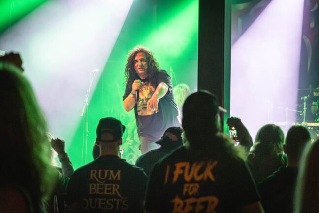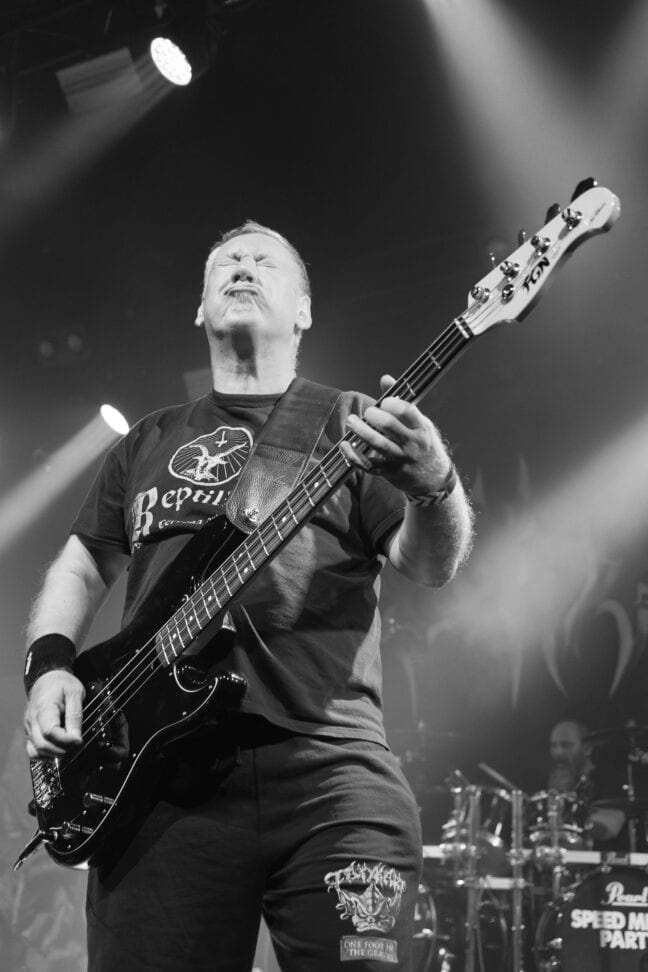 Pääbändiä odotellessa ja pohtiessani, ottaisinko sittenkin yhden oluen, palaavat muistot teiniaikaan. Olin ostanut äidiltä kerjäämilläni rahoilla Tankardin Alien -mini-lp:n ja kaverilta löytyi Morning After -vinyyli. Näitä kuunnellessa joimme ensimmäisiä muutaman oluen humaliamme ja fiilistelimme kansitaidetta. Warlockit, tankardit ja cannibalcorpset olisivat varmastikin jääneet kuulematta, jos kannessa olisivat olleet vaan esimerkiksi bändin tyypit. Näissä miltei kyynelkanavia aukovissa nostalgiafiiliksissä käyn hakemassa oluen, koska keikan alkuun on vielä reilusti. Vaan eipä olekaan. Tankard aloittaa monen kaljanjonottelijan ja urinaalin koskettelijan yllätykseksi keikan etuajassa.
