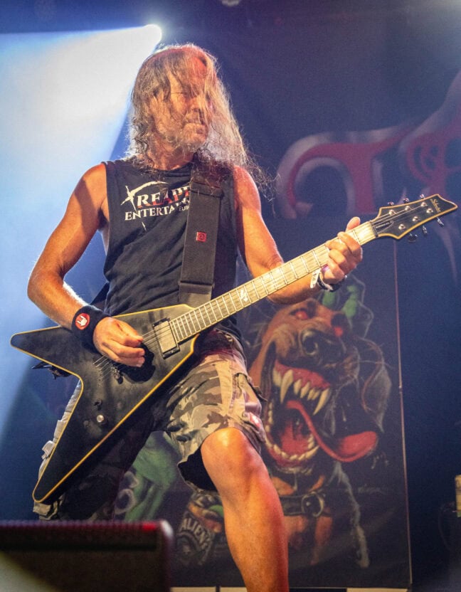 One Foot on the Grave paukahtaa ensimmäisenä ja ei todellakaan vaikuta, että bändi olisi menossa hautaan edes toisesta jalastaan. Meno on miltei yhtä energistä kuin Panteralla vuonna -92 ja laulaja Gerren habitus on kuin elettäisiin vuotta 1986. Yleisö valuu piiloistaan lähemmäksi. ”Are you ready for some old school thrash?” huudahtaa Gerre ja sitä seurannut itselle hyvinkin tuttu Morning After -kappale saa yleisön viimeistään hereille. Olutta toki juodaan teemaan kuuluvasti niin yhtyeen kuin yleisönkin taholta ja heitellään myös yleisöön. Gerren mukaan ainoa suomen kielen sana jonka hän tietää on kippis, ja sitä kyllä tehdään riittämiin. Need Money for a Beer -kappaleen aikana vaikuttavat sammumiskuntoisimmatkin havahtuvan hetkeksi hereille. Haen vielä toisen oluen Die With a Beer in Your Hand -rallatuksen aikana sillä logiikalla, että jos kuolen Tankardin keikalla ilman kaljaa kädessä, niin se on turha kuolema (ehkä se on sitä tosin kalja kädessäkin).