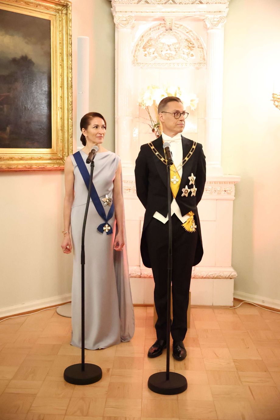 Presidentin puoliso Suzanne Innes-Stubb valitsi ylleen tänä vuonna 2025 hopeanhohtoisen iltapuvun, jonka oli suunnitellut Kaisa Turunen. Roosa Bröijer