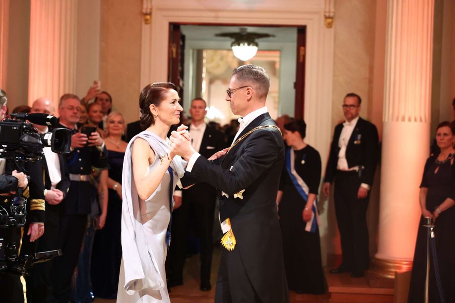 Presidenttiparille Lapissa hiihtoa opettanut Tiia Törrö oli pukeutunut Reidar Särestöniemen maalauksesta inspiraationsa saaneeseen asuun. Sen suunnitteli Jukka Puljujärvi. Roosa Bröijer