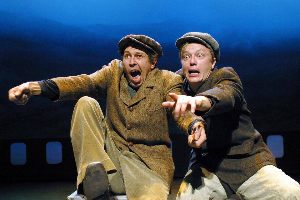 Helsingin kaupunginteatterin Arena-näyttämöllä voi vielä käydä katsomassa, millaisia kiviä näyttelijöillä Mika Nuojua ja Martti Suosalo on taskussaan.