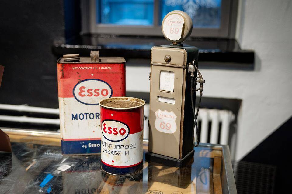– Olemme hankkineet tänne vanhaa, huoltiksen historiaan sopivaa esineistöä. Meillä oli 1960-luvun bensapumppu, mutta se näytti liian uudelta. Möimme sen Pukkilaan, Engman kertoo.