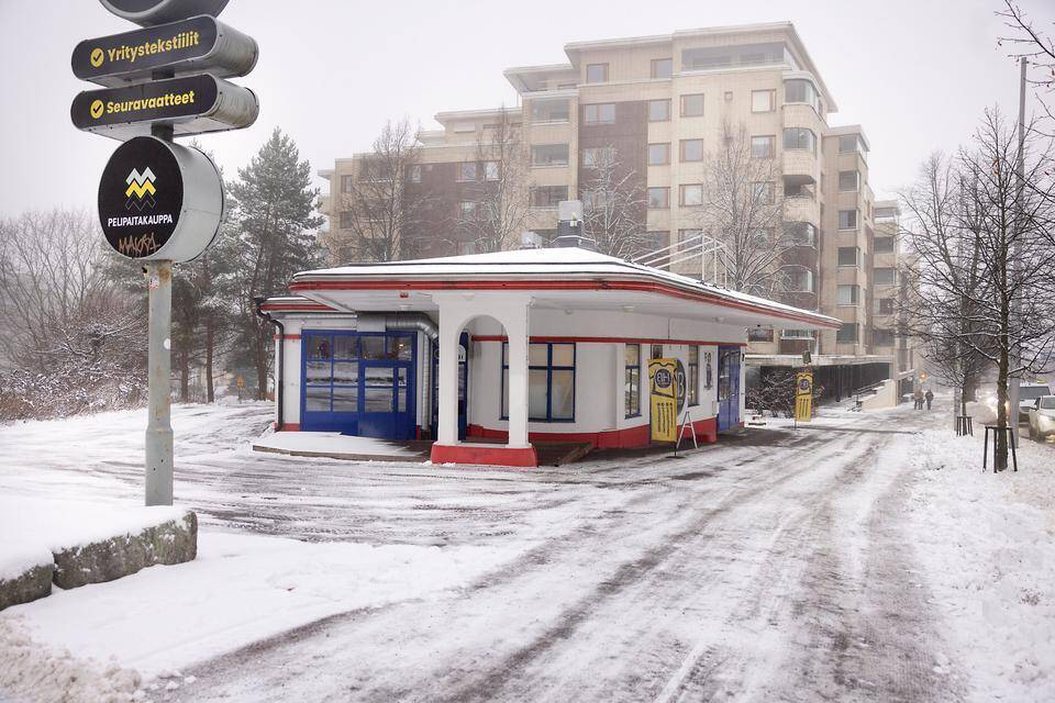 Vesijärvenkadulla sijaitseva huoltoasema on harvinaisuus, sillä ennen sotia rakennettuja huoltoasemia ei juurikaan ole enää jäljellä.