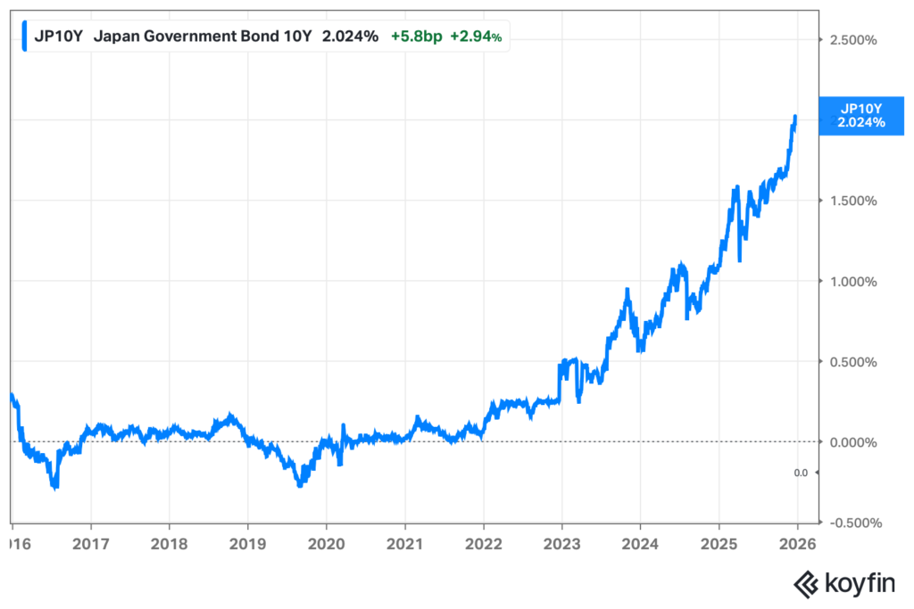 Kuva: Japanin 10-vuotisen valtionlainan tuottokehitys.