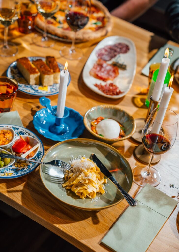 ”Käytämme mieluummin senkin ajan elämysten tuottamiseen. Valmistamme pastaa pöydän ääressä tarjoilukärryissä ja leikkaamme asiakkaille leikkelekoneella upeita leikkeleitä, niin porosta tehtyjä kuin suoraan Italiasta meille tuotuja coppaa, salamia ja ilmakuivattua kinkkua”, Mäntykangas toteaa.