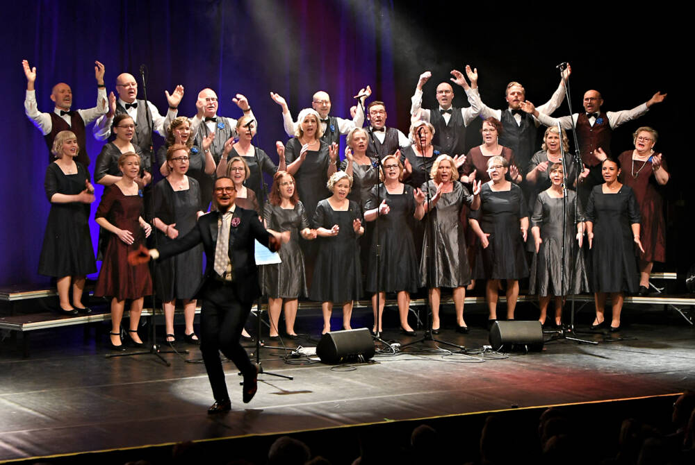 Salon Viihdelaulajat esiintyy ilman nuotteja ja sanoja. Adrian Smith ylärivissä vasemmalla. Kuva: SSS-arkisto/Minna Määttänen
