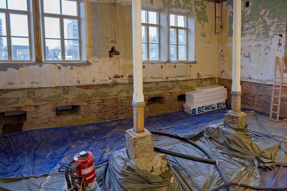 Ensimmäisen kerroksen näyttelytiloista on purettu vanhat alapohjien palkit pois. Kaikki kantavat puurakenteet menevät uusiksi, sillä vastaan on tullut lahoa ja mikrobivaurioita.