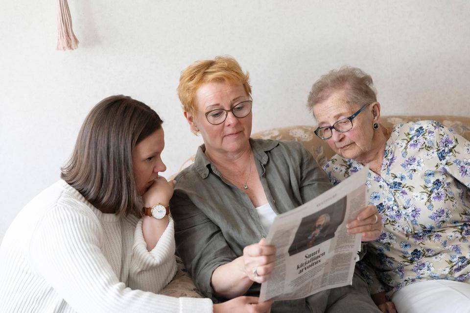 88-vuotias Heikkinen on Johanna Kokkosen edesmenneen tyttären Ainin tytär. Sunnuntaisuomalainen on saanut paikalle myös kaksi nuorinta polvea: Heikkisen tyttären Aila Thurinin, 63, ja tämän tyttären Jessica Thurinin, 34.