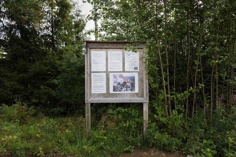 Kunnollisia teitä ei ollut, vaan perhe taittoi matkan kahden suon yli pitkospuita pitkin.