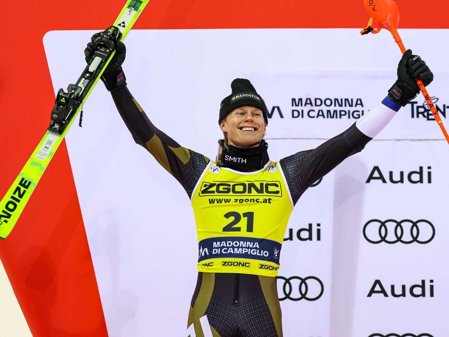 Eduard Hallberg pääsi tuulettamaan uransa ensimmäistä kakkossijaa alppihiihdon maailmancupissa. EPA / AOP