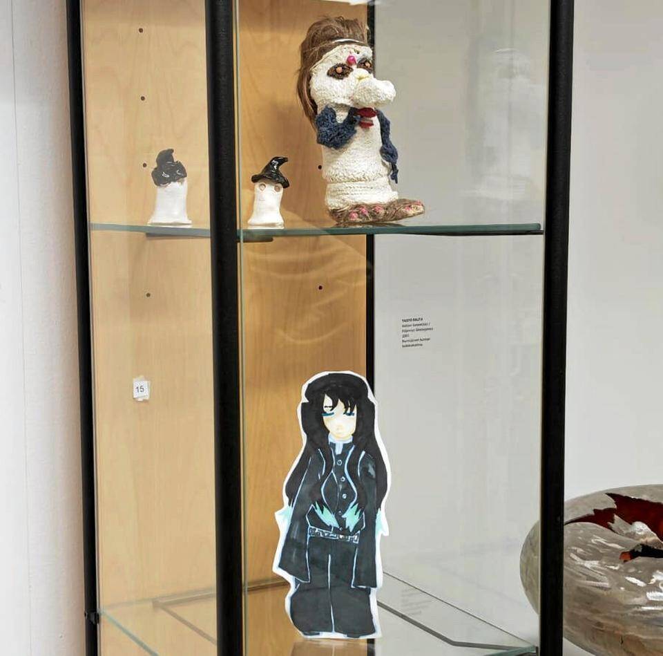 – Olin kerran pötköttelemässä Aurooran huoneessa ja huomasin, miten huolella hän oli sommitellut piirustuksiaan – figuureita, animehahmoja, rusetteja ja pahvirakennelmia. Siitä lähti ajatus yhteisnäyttelystä, Rasinkangas kertoo.