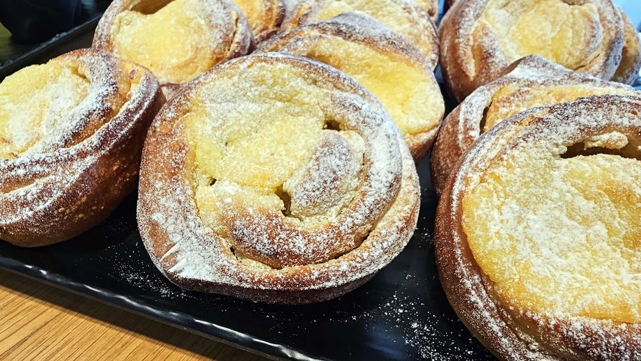 Reseptin maun salaisuus on pullan päällä lepäävä mehevän pehmeällä vaniljalla maustettu rahkainen sydän.