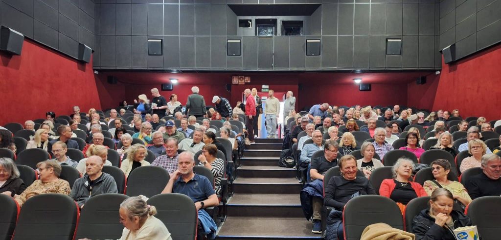 Elokuvan ensi-iltanäytäntö oli viimeistä penkkiä myöden loppuun myyty ja jo ennen leffan alkua iloinen ja odottava suomenkielinen puheensorina täytti niin teatterin aulan kuin itse salinkin.