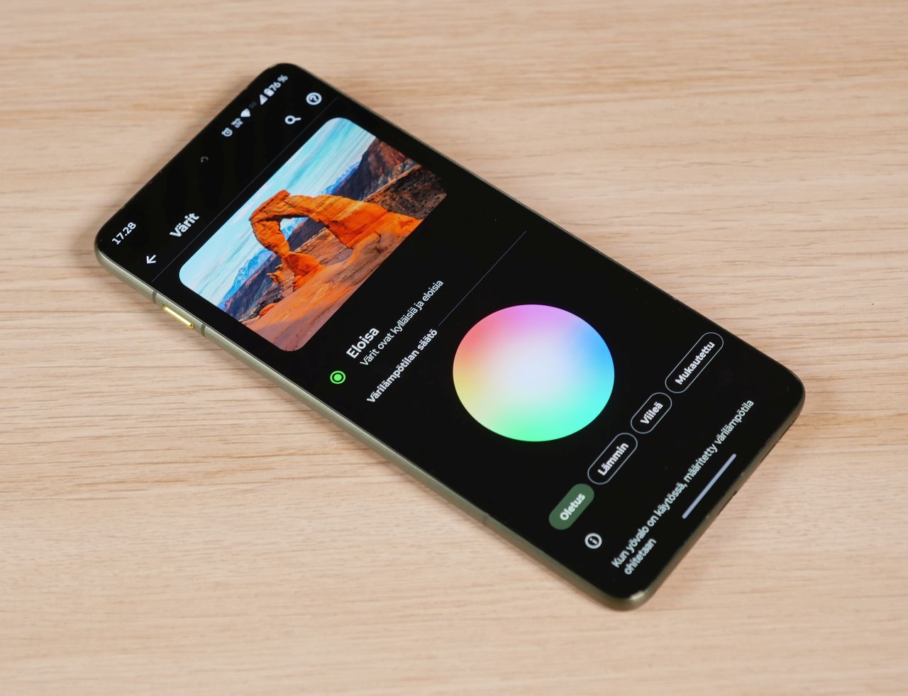 Käyttöliittymä on tuttu aiemmin tänä vuonna testatusta Razr 60 Ultra -mallista. Aiempaan tapaan oikealla suljinpainikkeen vieressä sijaitseva kuvaustilalista on käyttäjän mukautettavissa. Kameranvalintapainikkeiden viereen on sijoitettu myös makrokuvaustilan painike, joka on toteutuksena ihan näppärä. Asetuksista makrotilan saa halutessaan kytkeytymään päälle myös automaattisesti. Osassa kuvaustiloista asetusvalikko on piilotettu omaan pudotusvalikkoonsa, joka ei ole käytettävyyden kannalta näppärin mahdollinen toteutus.