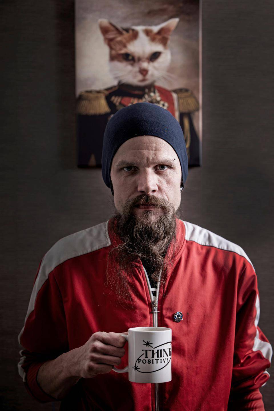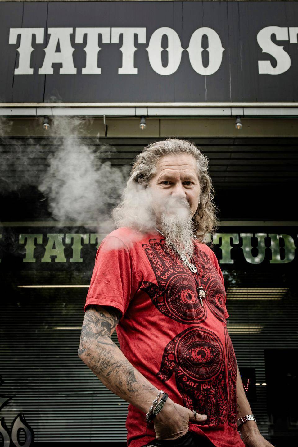 Kahvitunnilla-sarjassa vierailemme erilaisissa yrityksissä. Kuvassa Mix Tattoon tatuointitaiteilija Mika Laurila tupakkatauolla.
