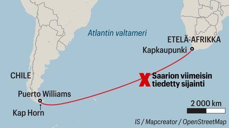Cymona Eaglen matka Saarion luo kestää kokonaisuudessaan useita tunteja. Alus sai tiedon merihädästä jo perjantaina.