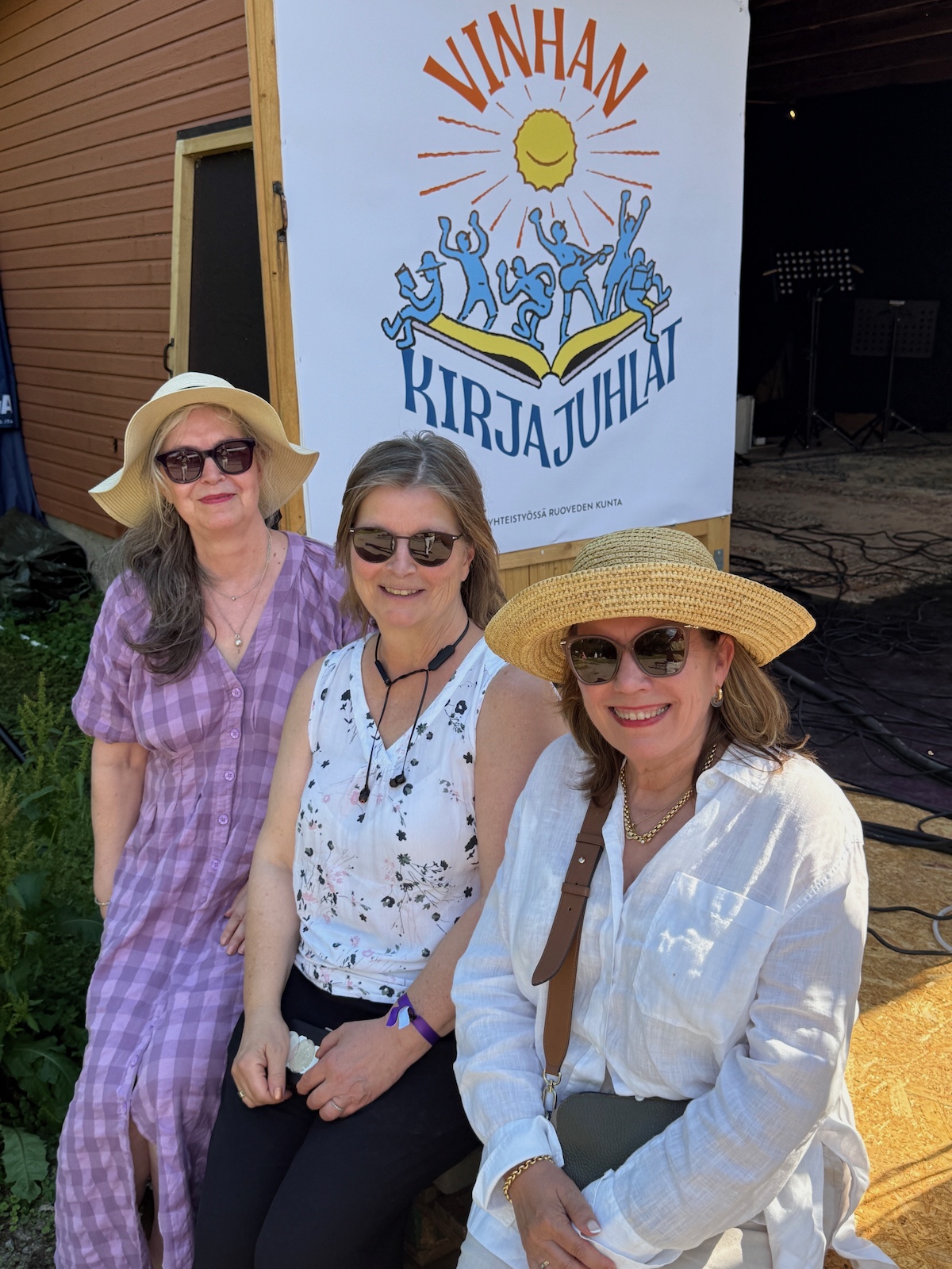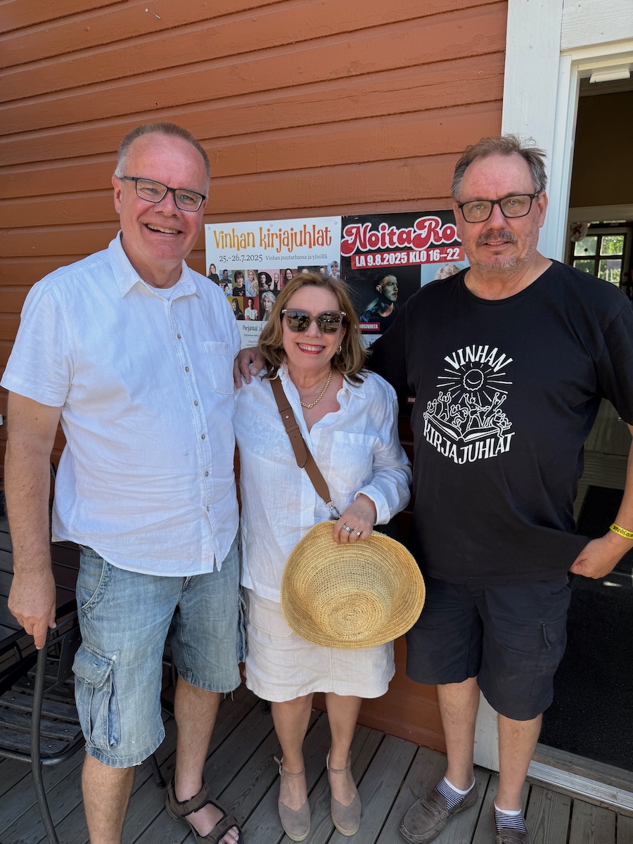 Vinhan kirjajuhlat Ruovedellä sattuivat keskelle hellejaksoa. Hakeuduimme kirjakaupan pihapiirissä katoksen alle tai puiden katveeseen varjoon, ja eri haastattelijat muistuttivat säännöllisesti juomisen tärkeydestä. Ohjelma oli jälleen laadukas, Suomen eturivin kirjailijoita, ensimmäisenä lavalla myyntitilastojen ehdoton kuningatar Satu Rämö.